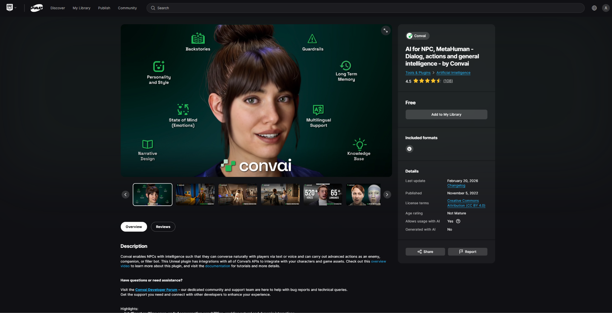 Ensure the Convai Plugin is installed from the Fab Store and enabled in your project.