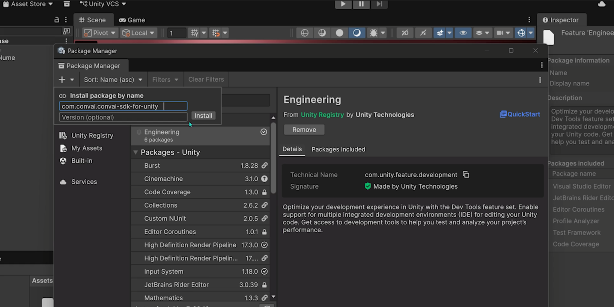 2. Head to the Convai Documentation and copy the Package Name from the installation section.