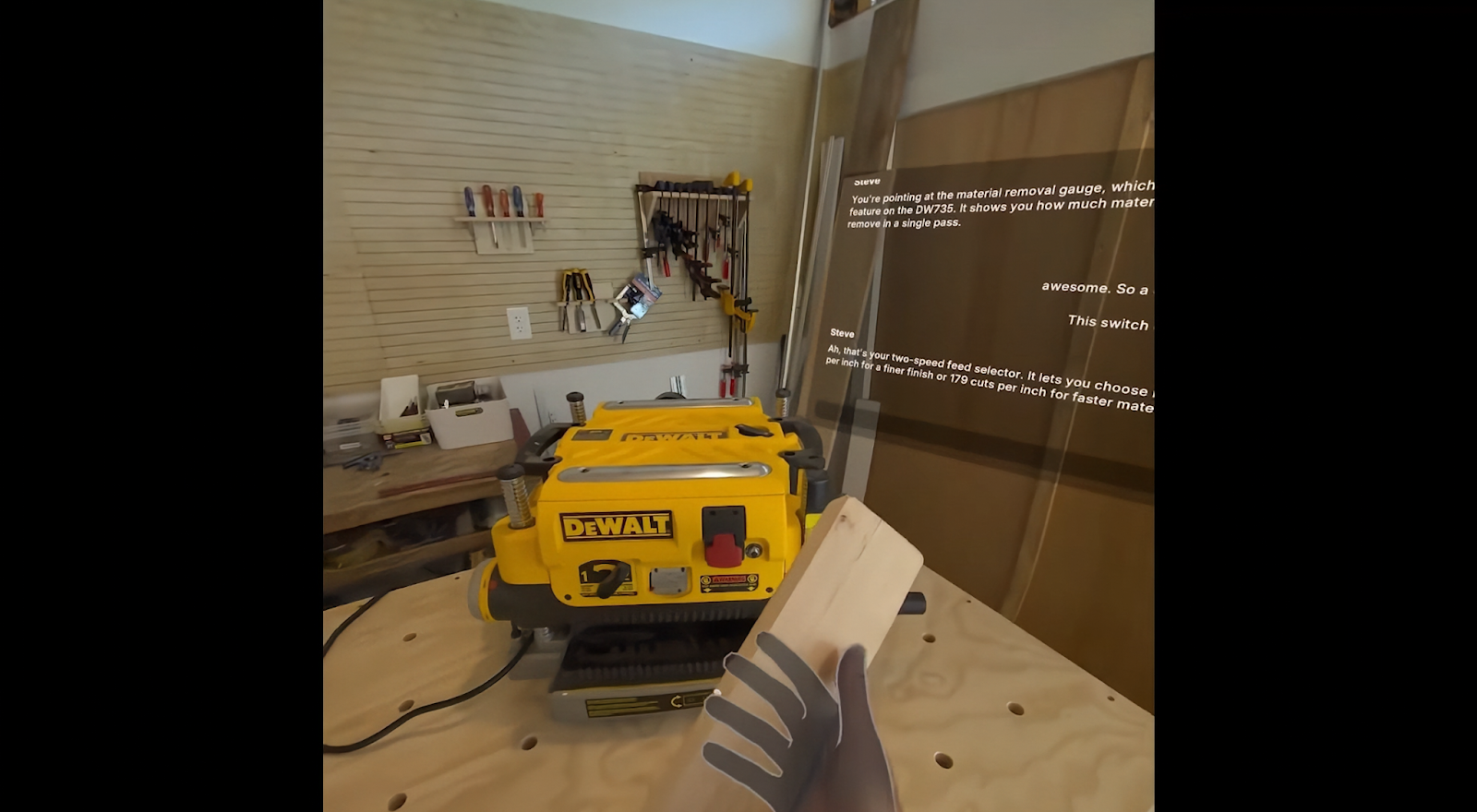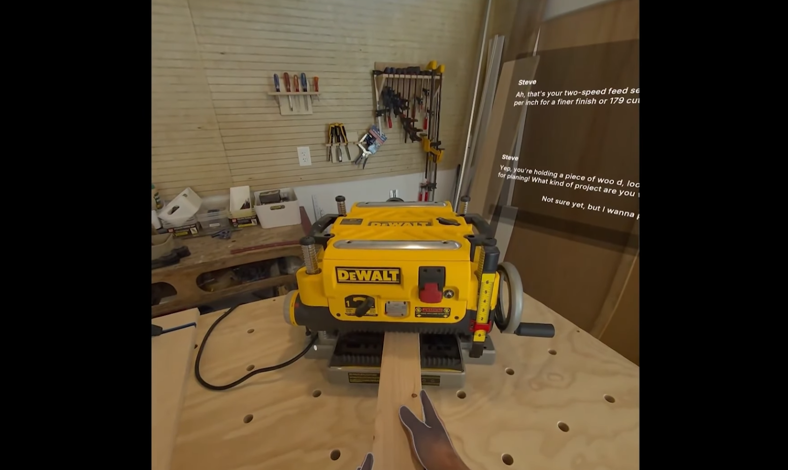 “Is this the right way to feed the board in?” “You’re holding the board flat against the table—that’s exactly right. Always keep it flat against the bed to avoid kickback.”